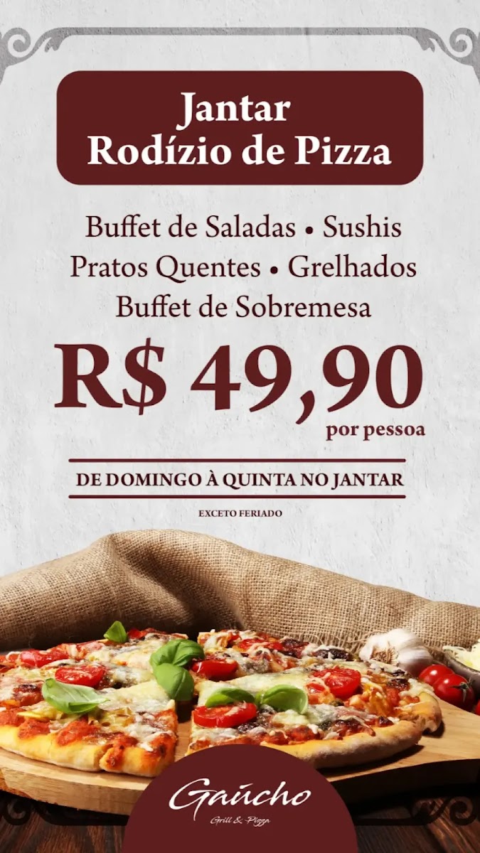 Don't miss their standout brigadeiro dessert pizza, a sweet treat that leaves a lasting impression. With attentive service and ample parking available, Gaucho Grill e Pizza promises not just a meal, but a memorable culinary adventure.